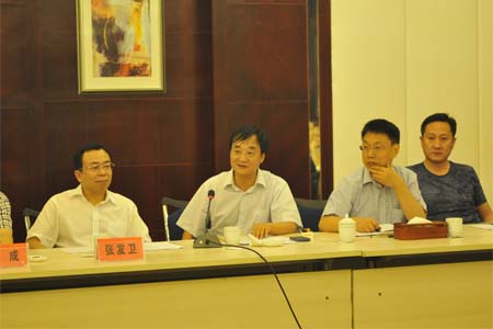 星空酒业董事长蒋红星(左二)在会上发言 7月5日,宜昌市工商联合会主席张发卫一行到星空酒业参观,市工商联(总商会)各副主席、副会…