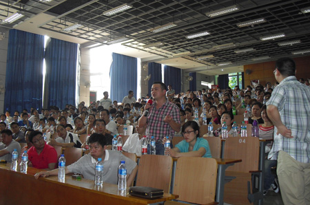 5月30日,星空酒业驻武汉的全体工作人员与市区及周边商家、酒店商超促销直销员、商家业务员等300多人在中南农业大学报告厅举行“喝五星星空-…