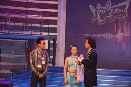 舞台上的张翠华、李玉刚和李咏 3月21日晚,星空酒业员工张翠华顺利通过央视“非常6+1”节目的现场录制,于22日下午回到星空。在公司同…
