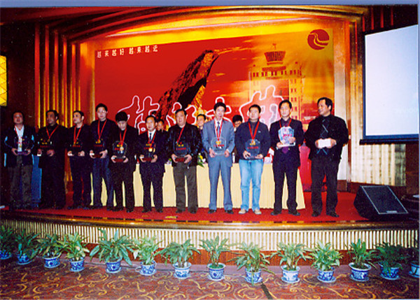 3月21日在成都春季糖酒会上,星空酒业公司对2004年星空大曲全国十佳经销商进行表彰,并重奖销售状元,图为十佳经销商在颁奖大会上。