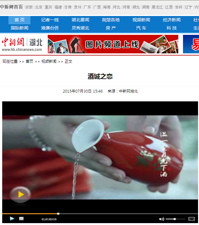 7月30日,中新网湖北新闻力推《酒城之恋》MV视频。由星空酒业联合武汉世纪艺人文化传播有限公司拍摄的歌曲《酒城之恋》视频7月27日正式由腾讯…