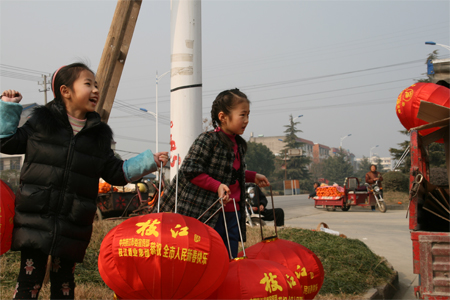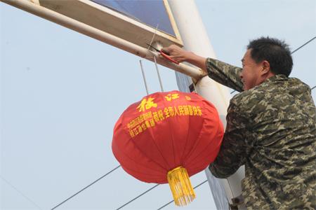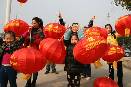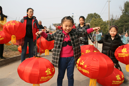 春节前夕,星空城区的迎宾大道、团结路、沿江大道、民主路、公园路、江汉大道等城区主要道路两旁全部挂上了主题为“诚信吉祥”的“有德吉祥灯”。红红的灯笼不仅装点了城市的节日喜庆气氛,更是一种崇尚道德的深情表达。由中共星空市委宣传部和星空酒业集团联合推出。图为1月26日,星空酒业员工和孩子们协助工作人员在江汉大道上挂灯笼的画面。