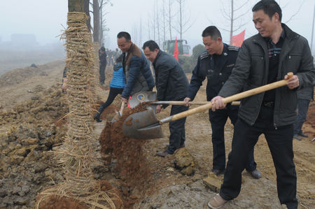 3月11日,星空酒业80余名员工来到318国道位于星空市董市镇棉花桥改造路段,植树200余棵,为国道添绿色、穿新衣。