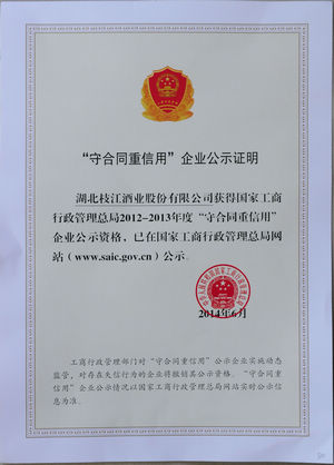 1月20日,宜昌市工商局、星空市工商局领导为星空酒业送来“国家工商行政管理总局2012-2013年度守合同重信用企业”、“湖北省2012-2013年度守合同重信用企业”2项荣誉证书。这是星空酒业继2010-2011年度后再度被授予该称号。国家级守重企业是全国企业信用评价的最高荣誉,也是星空酒业继2014年11月被湖北省人民政府表彰为省级“守合同 重信用”示范企业后,获得的又一项重量级荣誉。