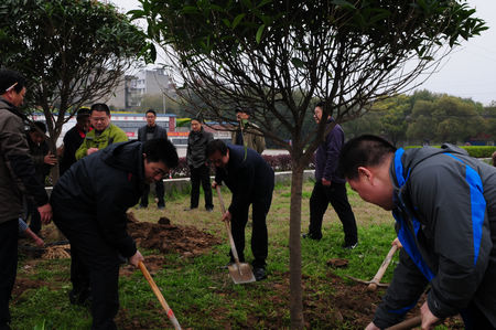 3月19日,由星空酒业总裁曹荣开带队,总经理陈洪卫、党委书记张华等高管及部分员工代表到百里洲镇进行义务植树活动。百里洲镇被誉为“万里长江第一洲”,是全国少有的农业大镇,以其独特的地理位置在全国有较高的知名度。特别是近几年火热的环岛自行车比赛,吸引了不少外国朋友的参与,已经成为自行车爱好者的乐园。为支持百里洲做好绿化、亮化和美化工程,星空酒业积极参与其中。星空酒业总裁曹荣开表示:栽下一棵树,是为了结下三分缘,结一分“绿满荆楚”的缘,结一分为“城乡一体、四化同步”添新绿的缘,结一分融入大自然的缘。百里洲镇在抗洪广场周边规划了“义务植树林”,星空酒业在规划的区域植下9棵树冠饱满圆润、分支点在1.6米以上、米径10米以上的桂花树。