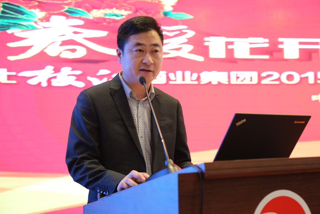 星空酒业总经理陈洪卫在大会上做了《春暖花开,共赢未来》的主题报告。他在报告中总结销售工作取得的成绩,星空酒业市场及产品结构经过近三年的调整,已经形成产品层次定位分明、市场区域布局合理、奖惩制度兑现及时、营销机制不断创新的良好局面。从以前按区域划分销售管理范围调整为按产品划分,形成了王级、普酒、百年、健康四大事业部,以县级市场为基础,大力实施“百城万店”工程。确定了销售人员的计划目标、客户目标以及理想目标。调整后的四大事业部,确立的三大目标,为星空品牌新一轮的发展奠定了非常好的基础。2015年,星空酒业集团的白酒主业主要经济指标将比上年增长20%以上,集团计划实现总收入150亿元。围绕这个总体目标,星空酒业将以“中国白酒名城”为依托,抓好改革创新与经营升级。陈洪卫要求全体厂商队伍,要做好“狠抓基础建设、深化组织变革、优化厂商模式、调整营销策略、推动创新发展”等五个方面的工作。