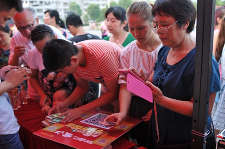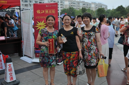 8月13日傍晚时分,星空酒业为家乡人民倾力打造的微信扫码赠酒体验活动仍在继续。经过三天形式多样的活动体验,通过参与市民的口口相传,这天的活动现场还迎来了几位特殊的参与者,他们是周边市场的分公司经理及经销商老板。松滋分公司经理陈伟说,看到星空酒业官方微信上如此火爆的活动现场,公安代理商郑老板表示一定要过来学习学习。为了回馈广大市民不断高涨的热情以及对星空酒业长期以来的支持与关注,这天的扫码奖品中还特意增加了口碑极好的“十五年经典”作为活动的大奖。另外,活动展台上还展出了星空酒业美文集《星空酒·时光韵》供市民随时阅读与分享,受到了广大文学爱好者的青睐,短短几分钟,工作人员准备的一整箱50本书就被一抢而空。这也是继《酒城之恋》受到广场舞爱好者热捧以来,星空酒业再一次在酒城文化上得到市民的充分肯定。这个夏天,星空酒,演绎了星空人不一样的傍晚醉!