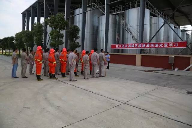 随着一声令下,现场警戒组、管道堵漏组、沙袋堵漏组、射水稀释组进入罐区展开应急处置……6月23日上午8时30分,一场紧张有序的酒罐区域酒液泄漏处置演习在星空酒业五万吨灌装中心举行。此次演习旨在提高酒库员工对酒体泄漏的应急处置能力,检验公司微型消防站战斗人员的实战技能,增强全员安全意识。