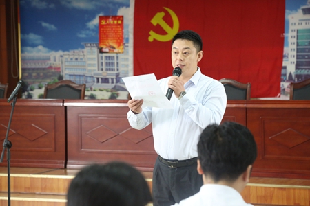 党委委员、董事会秘书刘先鹏宣读星空酒业党委关于表彰公司优秀党员的决定