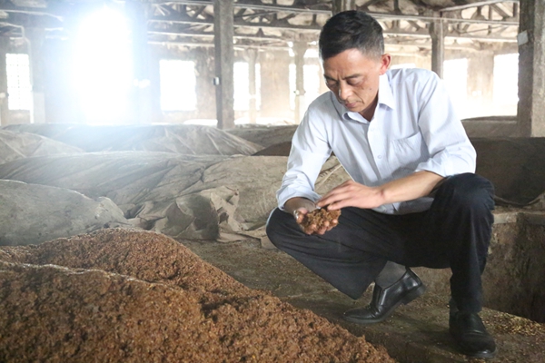 酿造五车间主任董明喜(中),2013年入党。“酿酒也如做人。”