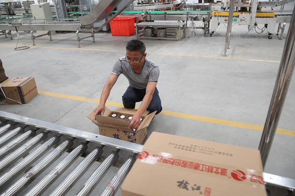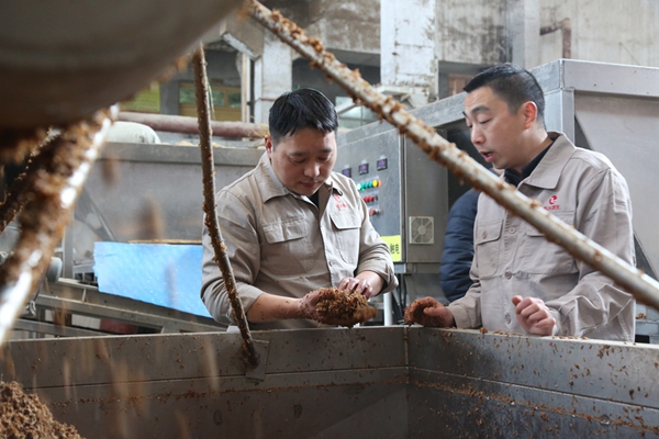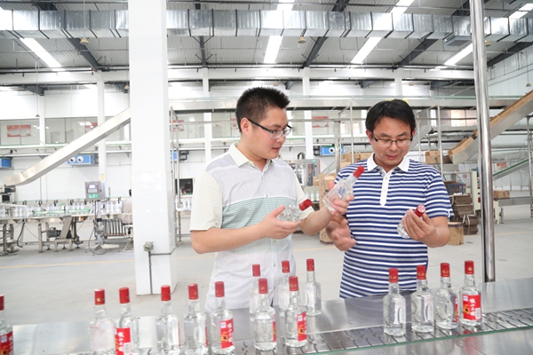 包装调度安鹏程(右),2011年入党。“在星空酒业加入党组织,一直心怀感恩。”