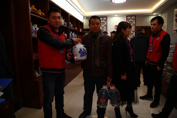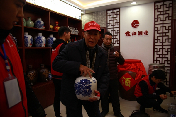 老人家说:你们的酒好,刚才品尝了一点。赠送的酒坛更实用